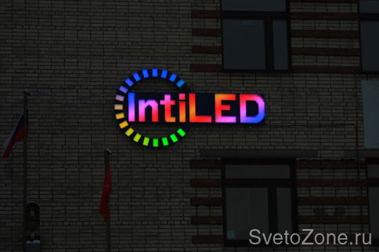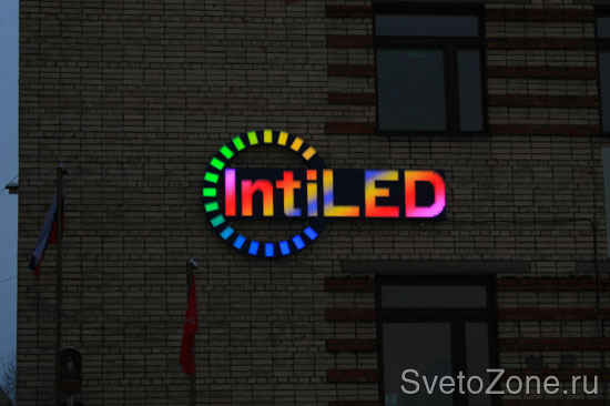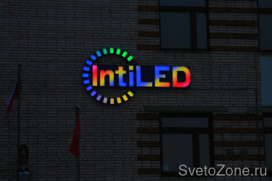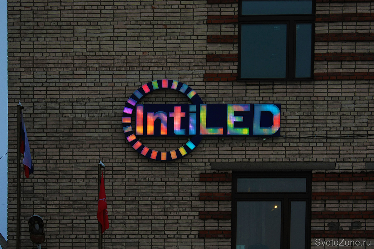 Компания «IntiLED» разместила на фасаде своего центрального офиса в Санкт-Петербурге светодинамическую вывеску, демонстрирующую работу системы «IntiSTYLE»