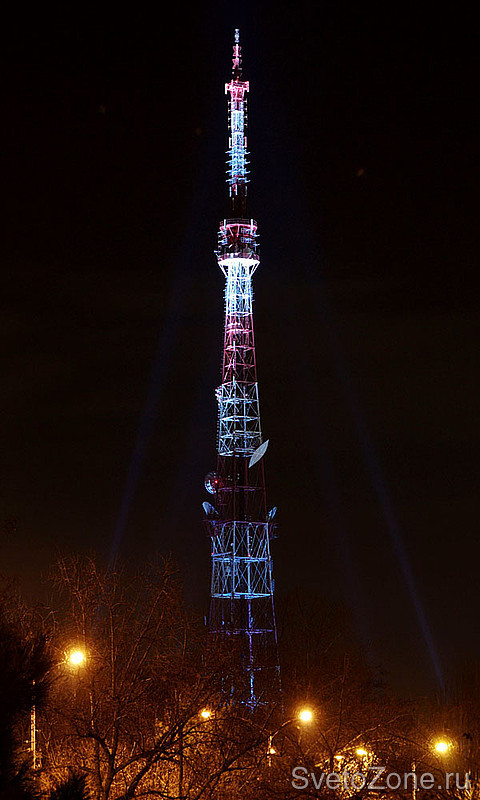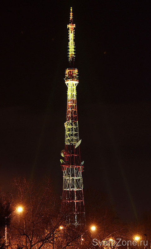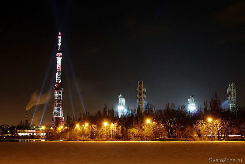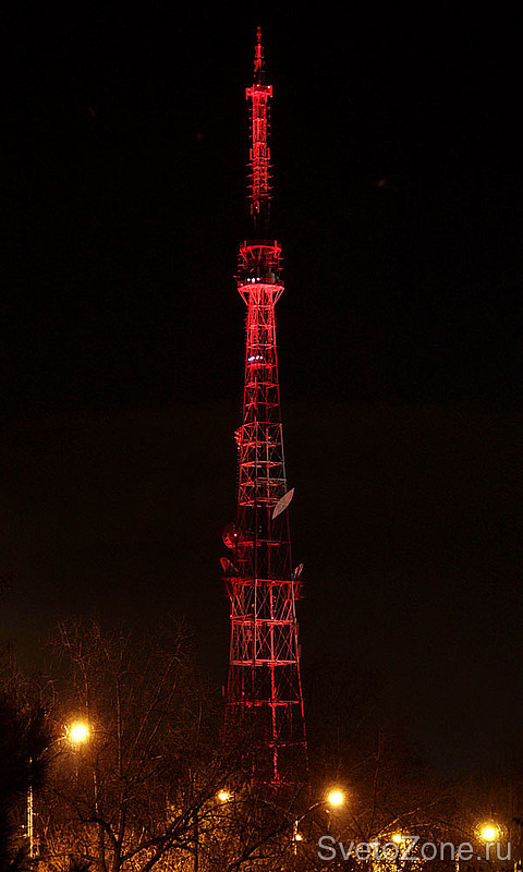Сияющая на фоне ночного неба яркими огнями телевышка придает индивидуальность внешнему облику города в темное время суток, добавляет ощущение уюта и комфорта горожанам.