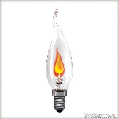 Лампа накаливания, передающая атмосферу настоящего пламени. Свет периодически мигает внутри стеклянной колбы, как настоящее пламя свечи.