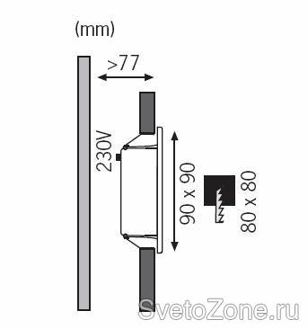 Незначительная глубина встраивания (100 mm) позволяет выполнить установку светильника просто, быстро и качественно практически в любом помещении.