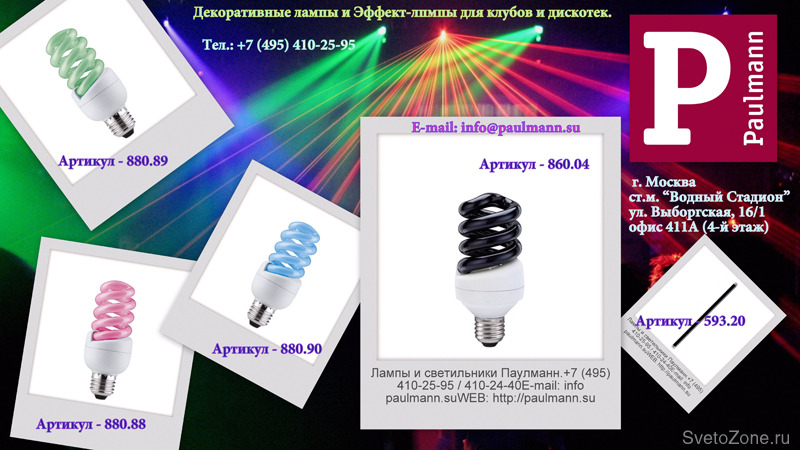 Компания Paulmann (Паулманн) представляет серию «Флуоресцентные (Декоративные) и Ультрафиолетовые лампы».