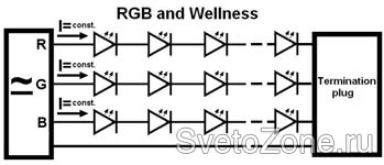 Для этого используются специальные контроллеры постоянного тока, которые фактически состоят из трех контроллеров (для каждого цвета в отдельности). Подача тока обеспечивается кнопкой, контролирующей внутренний электронный компонент.