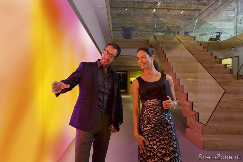 Панели с акустическими свойствами будут использоваться не только по прямому назначению (для поглощения шума и приглушения эхо в больших помещениях), но также смогут обеспечить своеобразный «визуальный отклик» на специфические звуки. К примеру, панель может быть запрограммирована таким образом, чтобы подсветка менялась при воспроизведении музыкального фрагмента. Благодаря этой интересной особенности, осветительные приборы также можно использовать в тесной связке с домашними развлекательными системами. К примеру, при просмотре видеофильма цвет и интенсивность освещения будет меняться с учетом происходящего на экране.