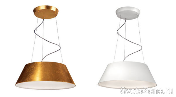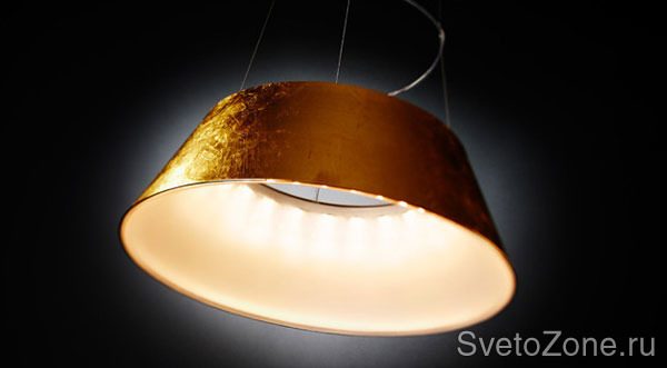 Внешне “Cielo“ воспринимается как традиционный подвесной светильник с лампой накаливания и «абажуром» в форме усеченного конуса.