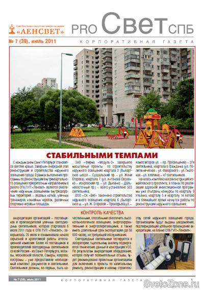 Выпуск корпоративной газеты "PRO Свет СПб" за июльНа корпоративном сайте предприятия опубликована интернет-версия корпоративной газеты "PRO Свет СПб" №7 (39).