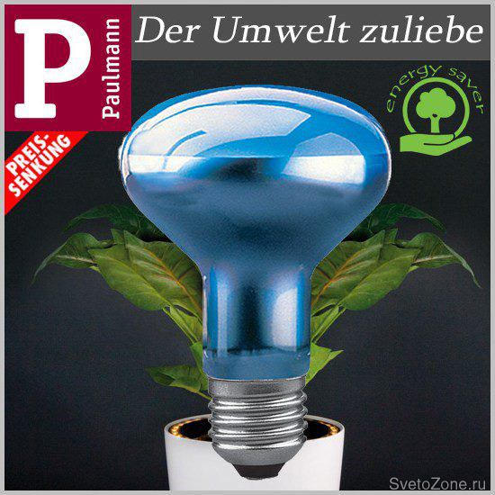 Лампа R80 рефлекторная для растений Paulmann со стандартным цоколем мощностью 60W излучает свет с углом рассеивания 30°.