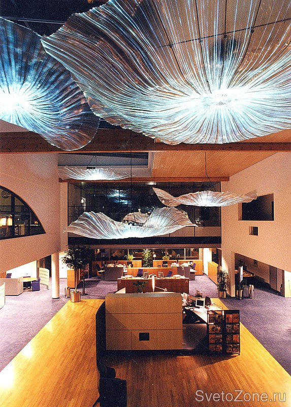 «Желе-Лайт» производят впечатление фантастических живых медуз, заброшенных к нам по воле случая. Их отстранённость, парение в воздухе, причудливые изгибы, прозрачность, и, в то же время, скульптурная изысканность словно бы и не связана с окружающим интерьером.
