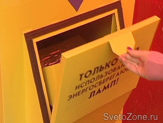 В некоторых районах был предложен третий вариант утилизации: на контейнерной площадке рядом с привычными емкостями для сбора бытового мусора установили контейнер для использованных энергосберегающих ламп. Узнать его легко: это металлический прямоугольный ящик желтого цвета с изображением энергосберегающей лампочки.