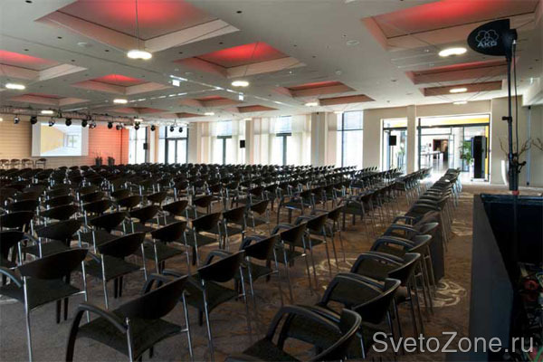 Большой зал центра, показанный на фотографиях, имеет площадь 500 м².