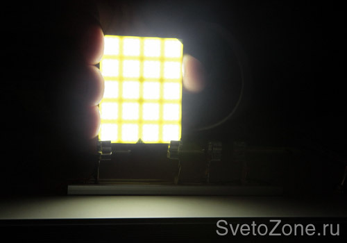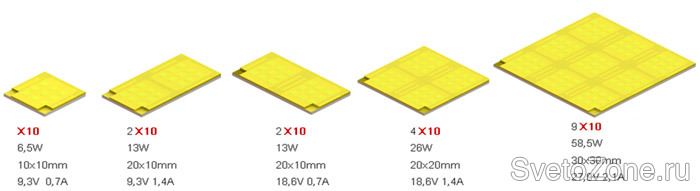 Один сегмент Optogan X10 потребляет 6,5W (700mA 9,3V) и имеет эффективность выше 100 лм/вт. В режиме постоянного тока нагрузка на сегмент может быть увеличена до 10W (1,03A 9,7V).