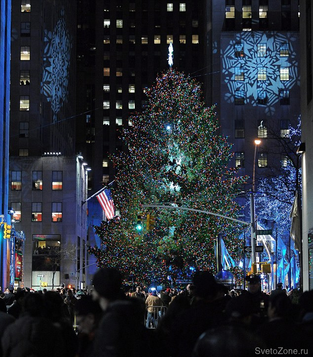 В центре Нью-Йорка, на площади Рокфеллер-плаза, зажгли главную рождественскую ель страны. Зелёная 23-метровая красавица окутана гирляндой из 30 тысяч энергосберегающих лампочек - это почти 11 километров света. А верхушку ёлки украсили гигантской хрустальной звездой диаметром почти 3 метра - подарок от мастеров австрийской компании Swarovski.