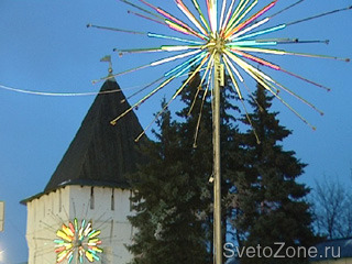 Это итальянское чудо весит около 8 килограммов. Здесь 27 режимов и три основных цвета: красный, синий и зеленый. Однако из них можно составить большое количество вариантов подсветки. В этом фонаре очень толстое стекло, и он полностью защищен от вандалов. Специалисты пока выбрали один плавный режим подсветки, чтобы опробовать всю систему. Если эксперимент будет удачным, в следующем году обещают использовать различные варианты. И даже увеличить количество приборов. А пока ярославцы могут любоваться красочными живыми елочками только у Спасо-Преображенского монастыря.
