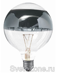 Серия Globe Зеркальные лампы. Шаровидные лампы с зеркальным покрытием, расположенным в виде широкой полосы вокруг стеклянного корпуса лампы или с зеркальным покрытием верхней части лампы. Доступны для заказа: арт. 15060 Globe 60W E27 170mm 125mm, арт.15460 Globe 60W E27 138mm 95mm, арт.15360 Globe 60W E27.
