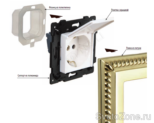 Среди новинок: диммер с сенсорным управлением; пятипостовые рамки в сериях San Sebastian, Sevilla, Toledo; влагозащищенная розетка IP44, накладки из металла для информационных розеток и Schuko; USB-разъем на винтах; светильник для накладного монтажа; радио для установки в потолочные светильники.