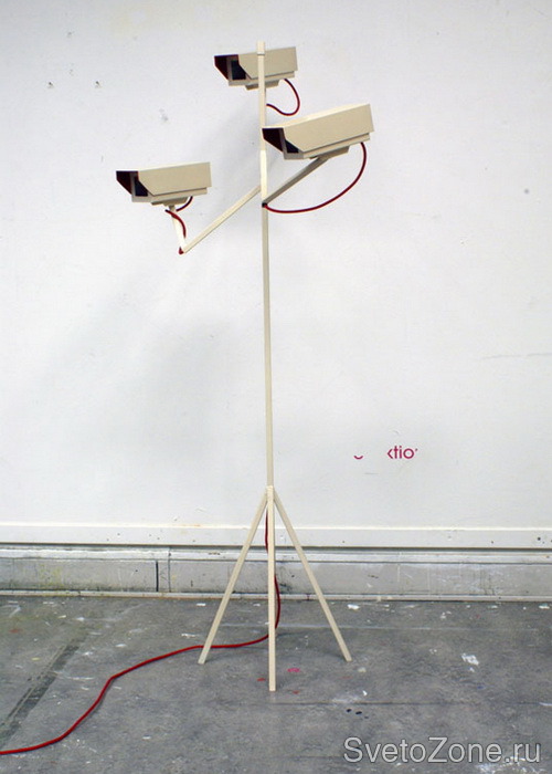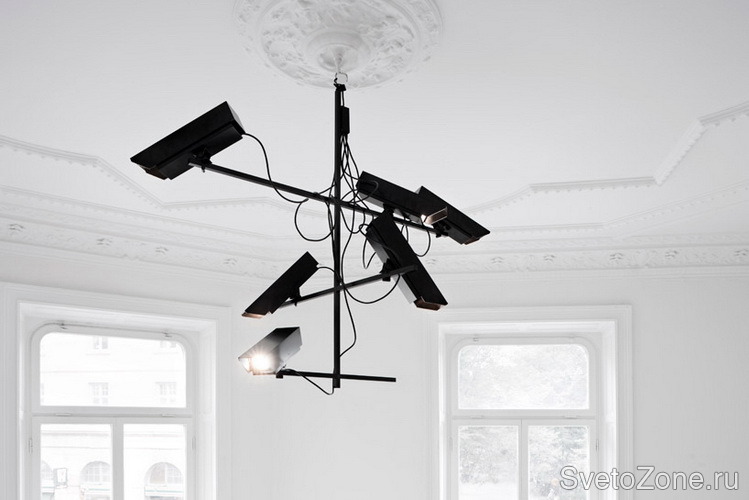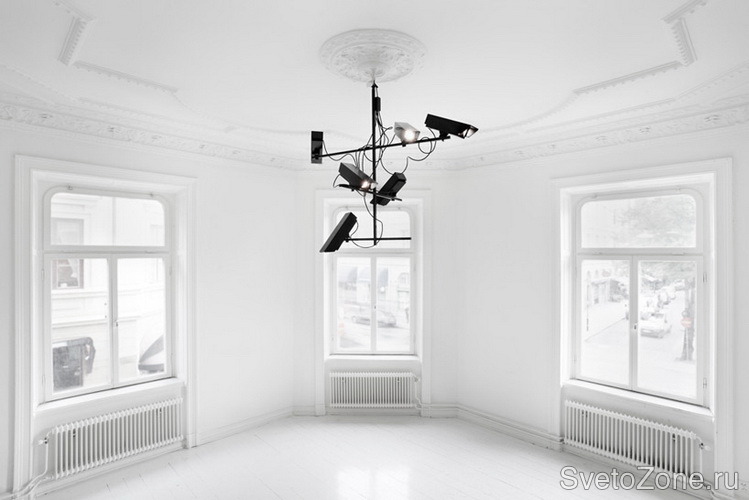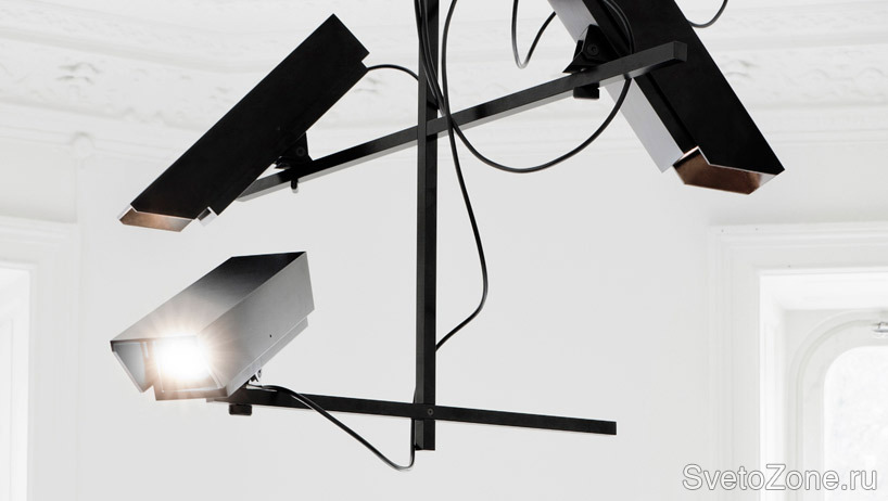 Люстра представляет собой пять или шесть камер наблюдения, в которых «спрятаны» источники света.
