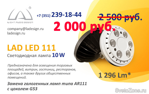 Компания "Лайт Аудио Дизайн" снижает цену на светодиодную лампу LAD LED 111 G53.