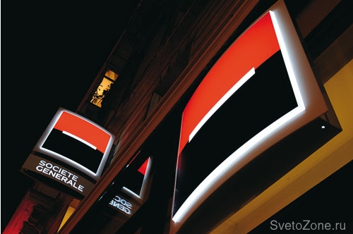 Банковская сеть Société Générale также не менее эффективно использует светодиодные решения. Компания имеет сильную приверженность корпоративному управлению, и в ноябре 2010 года приступила к реализации проекта переоснащения всех своих вывесок на светодиодные источники света, как часть инициативы по устойчивому развитию, что по расчетам сети, должно позволить сократить потребление энергии примерно на 50% в год.