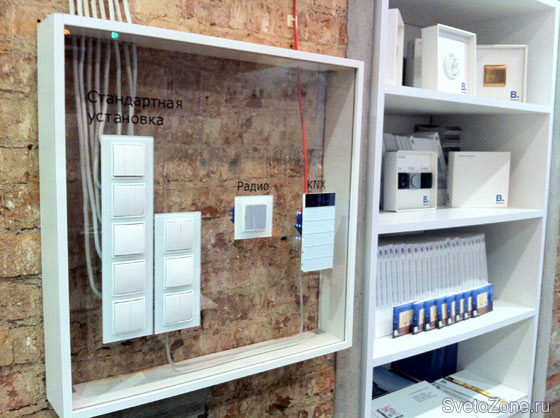 В шоу-руме представлены серии розеток и выключателей Berker (в т.ч. эксклюзивные), а также продемонстрированы возможности системы домашней автоматизации Berker Instabus KNX/EIB.