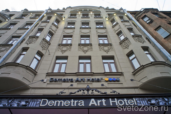 Demetra Art Hotel – дизайнерский отель, воплотивший в интерьерах номеров различные эпохи истории Санкт-Петербурга. Два этажа оформлены в имперском стиле XVIII века, еще два – в аристократическом стиле XIX века, еще три – в стиле модерн начала XX века. Владелец отеля планирует регулярно проводить различные арт-мероприятия.