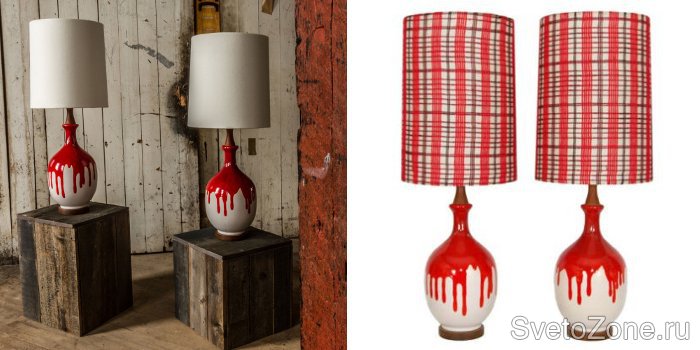 Канадский дизайнер винтажных светильников Лиа Фэган сумела совместить классический стиль и броское, оригинальное решение в концепте настольной лампы. С первого взгляда на модель «Aster» замечаешь лишь яркую текстуру материала абажура и какой-то расплывчатый абстрактный узор на основании лампы. И лишь приглядевшись, понимаешь, что на самом деле, это есть не что иное, как кровавое пятно. Конечно же, нарисовано оно простой красной краской.