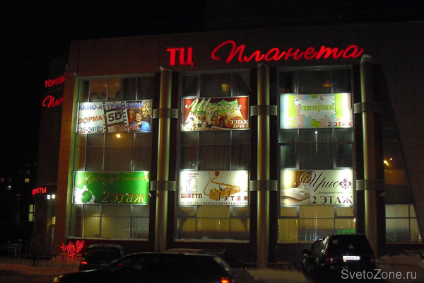 Оборудование "IntiLED" в подсветке баннеров ТЦ "Планета" в г. Новый Уренгой