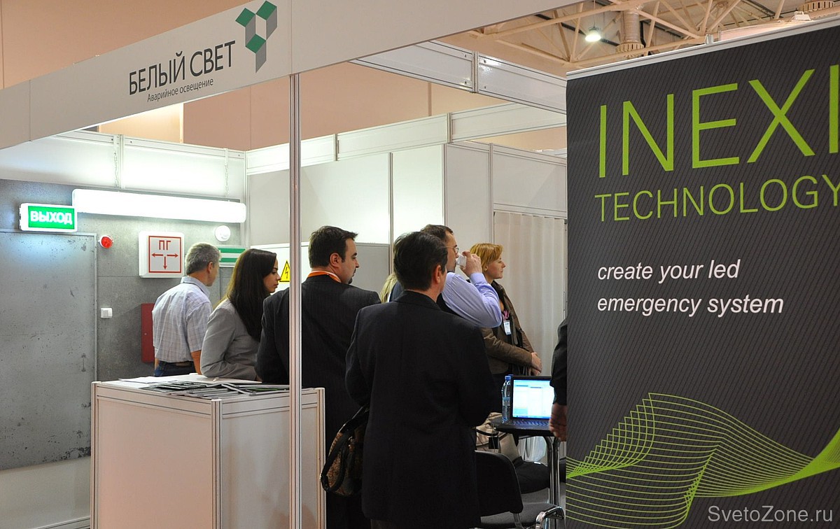 Экспозиция была посвящена INEXI™ TECHNOLOGY. Это инновационная технология аварийного освещения для светодиодных источников света, созданная инженерами Компании «Белый свет».