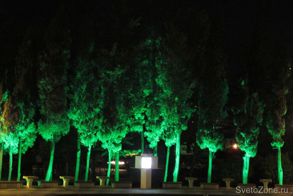 В мае 2012 года осуществлена подсветка деревьев в сквере города Туапсе. Для подсветки было использовано более 30 светодиодных прожекторов серии IntiRAY. Источником света служат светодиоды компании Nichia (Япония) зеленого цвета с линзами 15 градусов. Освещение с грунта в совокупности с цветом подсветки создает интересные световые эффекты и придает скверу сказочный и даже мистический вид.