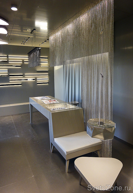 На площади 70 кв.м. разместился выставочный модуль с высококачественными светодиодными светильниками XAL для дома и офиса, а также комфортная переговорная и рабочая зона.