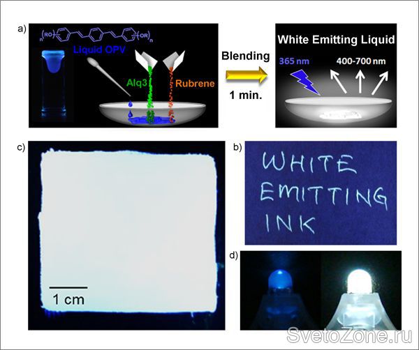 Научная группа Такаши Наканиши из Национального института материаловедения (Япония) завершила создание нелетучего жидкого материала, излучающего белый свет при комнатной температуре.