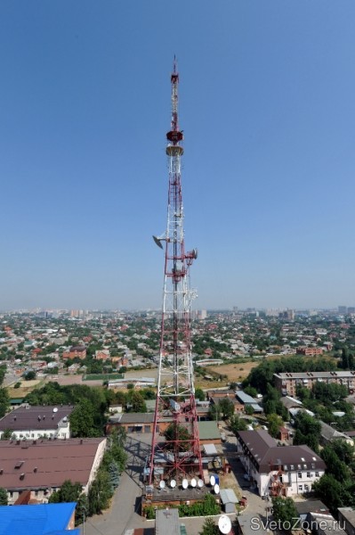Краснодарская телебашня сегодня предстанет в новом свете. Рабочие установили на ней новую архитектурную подсветку.