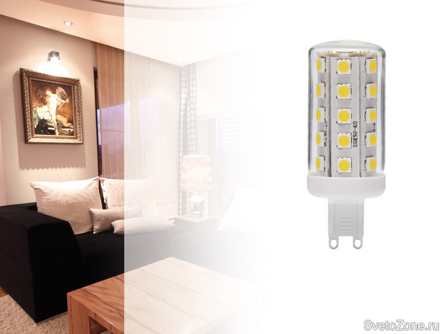 SAYA LED34 SMD G9-WW может быть применена вместо стандартной галогенная лампочка накаливания мощностью 37 Вт.