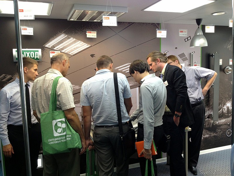 Отдельно хочется отметить выставочную конструкцию шоу-рума, оказавшись перед которой, можно было ощутить себя, как и в сегменте офисного и торгового освещения, так и в других сегментах одновременно.