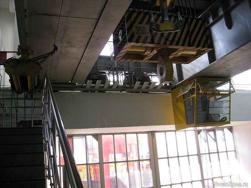 Светильники размещены на кран-балке главного машинного зала гидротурбинных агрегатов.