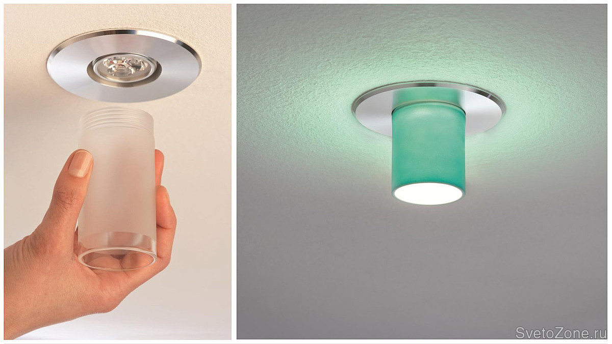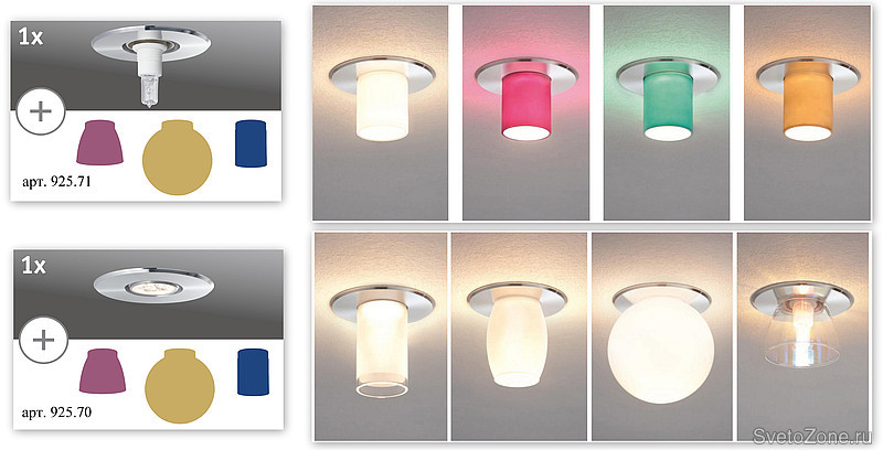2 новых встраиваемых светильника и 8 декоративных стеклянных плафонов дают прекрасную возможность для создания индивидуального интерьера, 16 различных цветовых комбинаций.