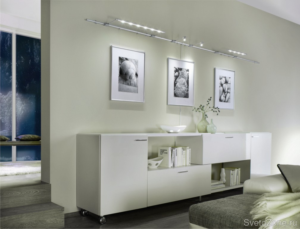 Как наиболее простой вариант, скомбинировать систему можно на основе одной из базовых систем (арт. 950.67 или 950.68) и подсветок (или маятниковых светильников).