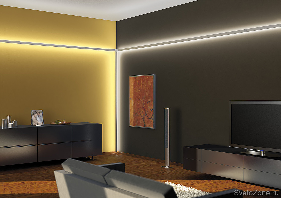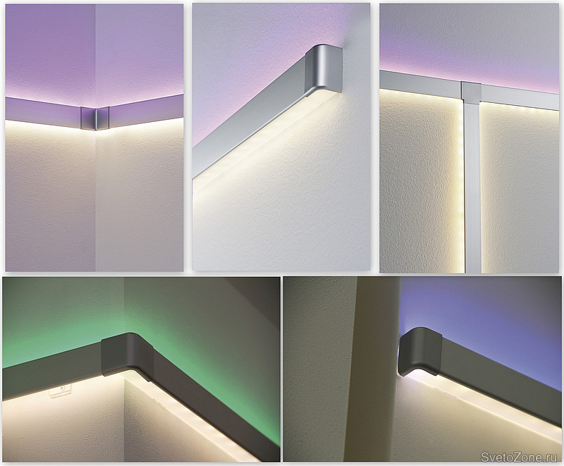 Варианты установки – стены, потолок, для освещения внутренних или внешних углов, а также с диффузором (рассеивателем) – при горизонтальной подсветке.