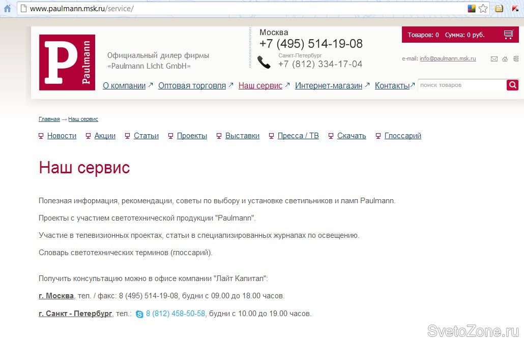 Официальный дилер с 2006 года фабрики «Paulmann Licht GmbH» (Германия) - производителя светотехнической продукции для интерьерного, офисного и уличного освещения, торговая марка - «Paulmann».