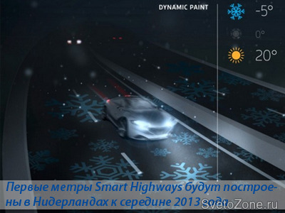 Первые метры Smart Highways будут построены в Нидерландах к середине 2013 года. По проекту дороги Smart Highways в темное время суток, которые обработают специальными люминесцентным порошком, сделают дополнительное освещение ненужным. Накопленного днем солнечного света хватит для обеспечения до 10 часов в рабочем состоянии Smart Highways.