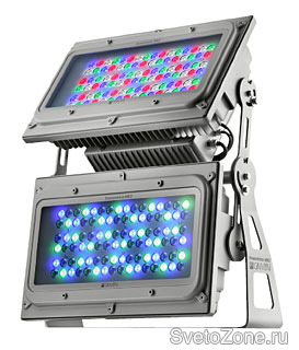 GRIVEN POWERSHINE MK2 D, состоит из двух светодиодных кластеров и в общей сложности содержит 192 светодиода. Независимое управление каждым светодиодным массивом позволяет создавать эстетически сбалансированные либо абсолютно независимые световые потоки, и предоставляет полную свободу для дизайнерских решений равно как при освещении фасадов большой площади, так и удаленных поверхностей малого размера.