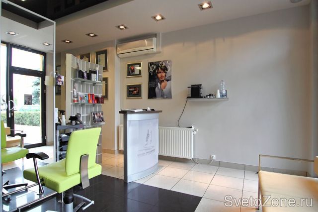Второй проект, где были установлены наши светильники - это «Парикмахерский салон» в Сьреме. Здесь все помещения красиво освещены светильниками типа «даунлайт» MATEO DLP-150-GR.