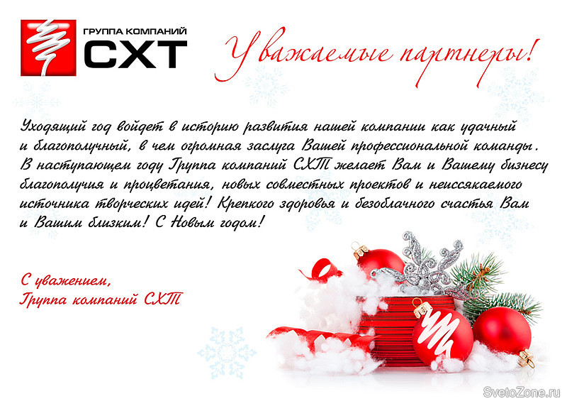Поздравление с наступающим Новым годом от Группы Компаний СХТ