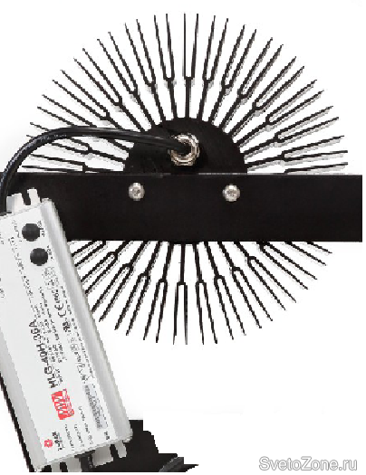 Основой серии решений является алюминиевый радиатор. Ребра радиатора позволяют беспрепятственно происходить конвекции воздуха снизу-вверх, в отличии от корпусов в форме «ЛОПАТА» , где теплообмен происходит в горизонтальной или слегка наклонной области.