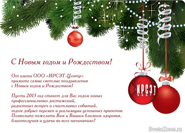 От имени ООО "ИРСЭТ-Центр" примите самые светлые поздравления с Новым годом и рождеством!