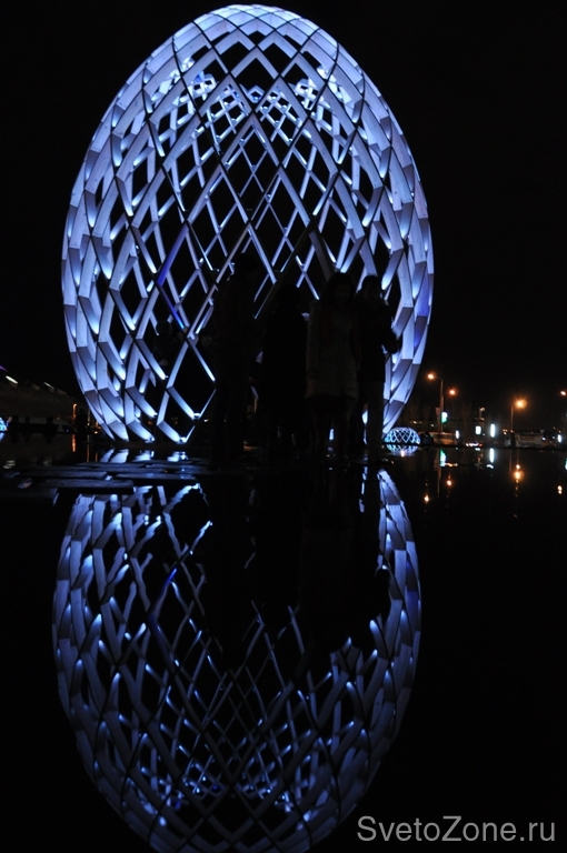 В Парке влюбленных зрители увидели монументальное деревянное яйцо, созданное на основе «золотого сечения» скульпторами Мостафой Хади и Полом Марчандисе. Художник по свету Курт Вермюлен и сценографист Маркос Виналс Бассолс создали анимационное и динамическое освещение скульптуры, что привело ее форму к жизни.