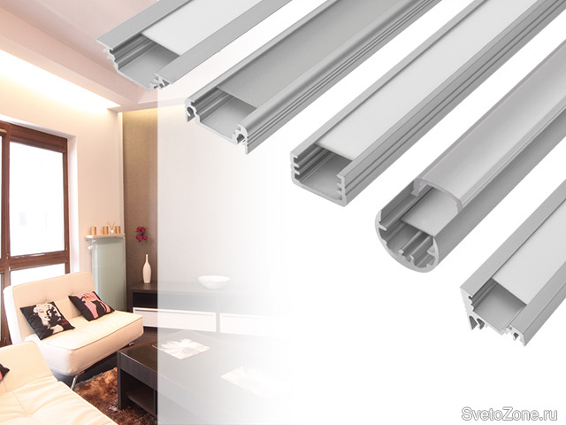 Предлагается выбор из пяти типов профилей длиной 1000 мм, выполненных из анодированного алюминия: