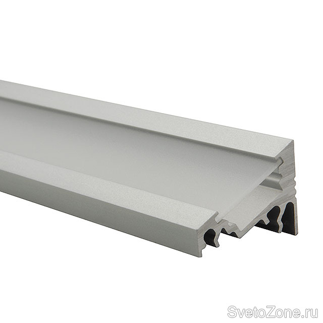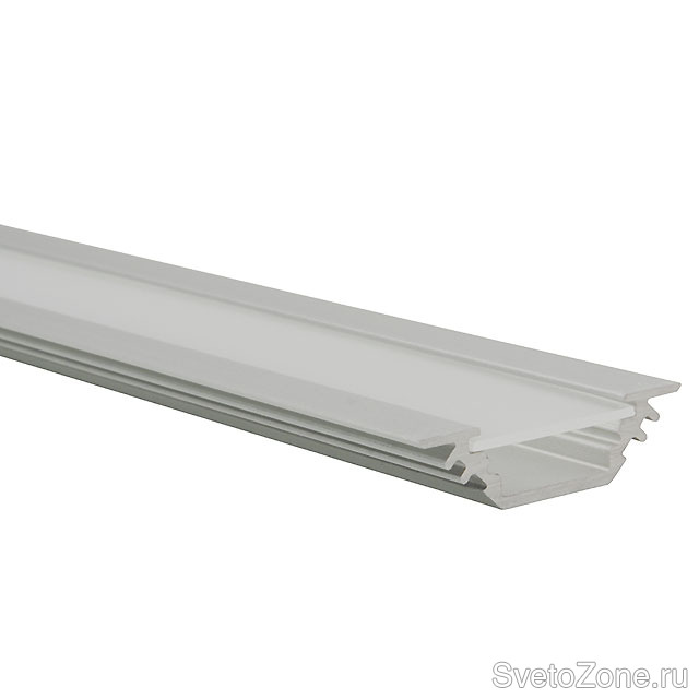 - PROFILO C – угловой профиль, конструкция которого позволяет добиться угла свечения 30 ° или 60 ° в зависимости от предпочтений пользователя, а его главным преимуществом является большой угол свечения, защищающий от ослепления. Профиль может монтироваться как по плоскости, так и в углах, тем самым прекрасно подходит для освещения витрин, и предназначен для лент LED с максимальной шириной 10 мм. Для профиля можно подобрать дополнительные аксессуары: плафон цвета «молоко» SHADE C/D/E-W или плафон цвета «иней» SHADE C/D/E-FR, заглушки из АБС-пластика STOPPER C и кронштейн для крепления HANDLE C/D/E.
