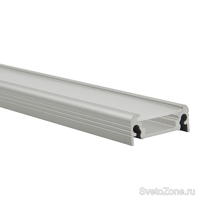 - PROFILO B – малогабаритный профиль универсального назначения для лент LED с максимальной шириной 8 мм. Благодаря небольшому размеру (12,2 мм x 7 мм) и простоте формы, он будет незаменим в архитектурных объектах, в качестве эвакуационного освещения, прекрасно подойдет для монтажа мебельного, лестничного, надпольного освещения и даже для крепления модулей LED в плитке для ванной комнаты. Профиль не нуждается в кронштейнах, так как может монтироваться с помощью винтов, двусторонней клейкой ленты или монтажного клея. Для профиля можно подобрать дополнительные аксессуары: плафон цвета «молоко» SHADE B-W или плафон цвета «иней» SHADE B-FR, заглушки из АБС-пластика STOPPER B.