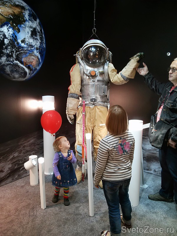 В окружении столбиков ARES располагался настоящий космический скафандр, любезно предоставленный Центром подготовки космонавтов им. Ю.А. Гагарина.