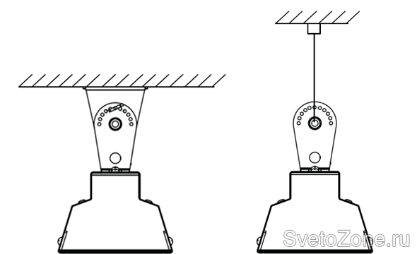 Удобный крепеж позволяет осуществлять подвесной либо накладной монтаж светильников.