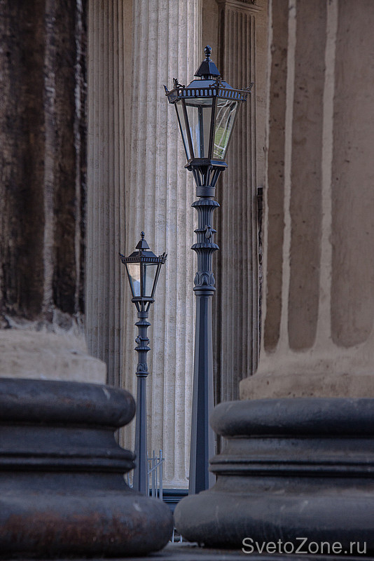 Художественные фонари у Казанского собора в Санкт-Петербурге